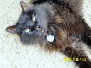 Felix also known as Feef showed up in our neighbor’s garden in June 2002. Jacob heard meowing and checked it out, bringing a completely black fluff ball back with him. I remember the first night I spent hours holding this soft black kitten out in the garage quickly falling in love.